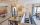 Al piano terra rialzato troviamo: soggiorno con cucina a vista con uscita sul balcone e servizio con doccia e finestra.
