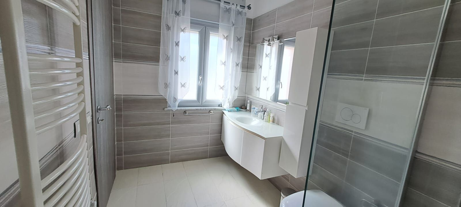 Anzio, zona Villa Claudia in un quartiere residenziale e a 1,5 km dal mare, proponiamo in vendita bellissimo appartamento di mq 120 posto al piano terra di una palazzina quadrifamiliare (senza condominio). Questa abitazione accoglie con spazi ben distribuiti e gode di un ottima esposizione che garantisce luce naturale durante tutto il giorno (sud-est-ovest), internamente si compone da: ingresso, cucina abitabile con porta finestra che conduce sul giardino di proprietà, salone doppio con sala cinema, camera matrimoniale con cabina armadio e bagno en suite, ampia cameretta, servizio con finestra e doccia. Completano la proprietà due giardini posti fronte e retro casa con: portico, ripostiglio con zona lavanderia e tre posti auto scoperti e custoditi. L’appartamento è completamente ristrutturato e con impianti certificati, rifinito con impianto di domotica per il controllo remoto di luci e dispositivi elettrici, portone blindato, finestre in PVC con vetro camera 4+4 temperato, avvolgibili in acciaio coibentate e blindate, impianto di allarme, climatizzato e termoautonomo. L’immobile è inserito in un contesto residenziale molto tranquillo e ricco di servizi e aree verdi. Nelle immediate vicinanze troviamo asilo comunale, scuola elementare, bar, pescheria, macelleria, alimentari, forno, ferramenta, una chiesa, un campo sportivo, piscina, para farmacia. Il servizio di pullman locale ha la fermata in prossimità dell’appartamento mentre la stazione ferroviaria dista circa 8 minuti a piedi. La richiesta è di euro 225.000, 00.